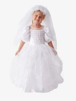 Votre petite fille rêve déjà d’avoir la bague au doigt ? Pour lui permettre de patienter un peu, offrez-lui ce déguisement de mariée ! Pour le carnaval ou juste pour le plaisir de se déguiser à la maison, toutes les occasions sont bonnes pour revêtir cette jolie robe de mariée !