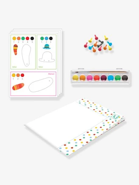 • Contenu : 12 feuilles à peindre avec des formes à détachées, 1 palette de 8 couleurs gouache et 1 pinceau, 32 attaches parisiennes, 1 nappe de protection, 1 livret explicatif pas à pas.