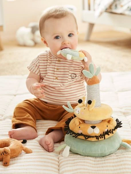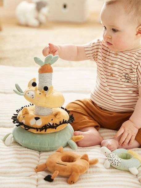 La p’tite tour qui monte, qui monte ! Grâce à ce jouet à empiler en tissu, les enfants pourront développer leur motricité fine en tentant d’empiler chaque élément sur le palmier. A la découverte de différentes couleurs et textures, ils éveillent leur sens tout en douceur.